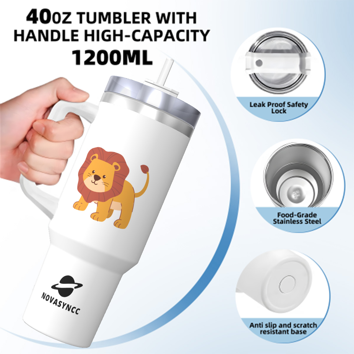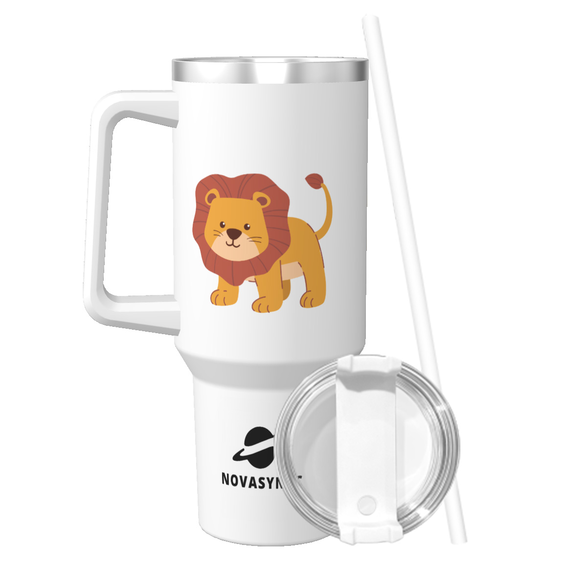 Hand Drawn Lion 40oz Stainless Steel Tumbler With Handle