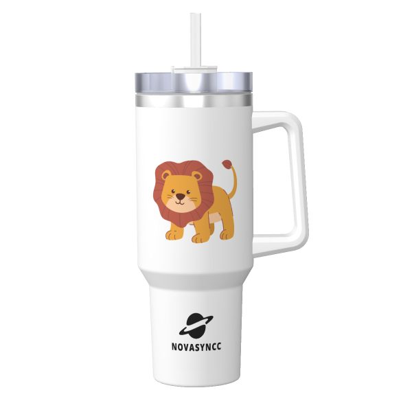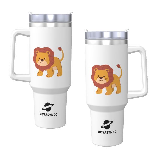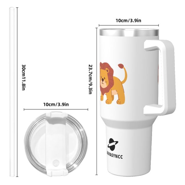 Hand Drawn Lion 40oz Stainless Steel Tumbler With Handle